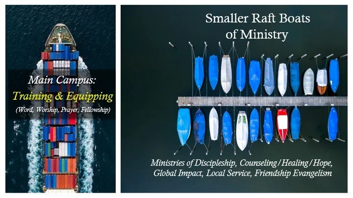 What eventually happens in the training and equipping station? Little life-boats of ministry get launched out for ministry!